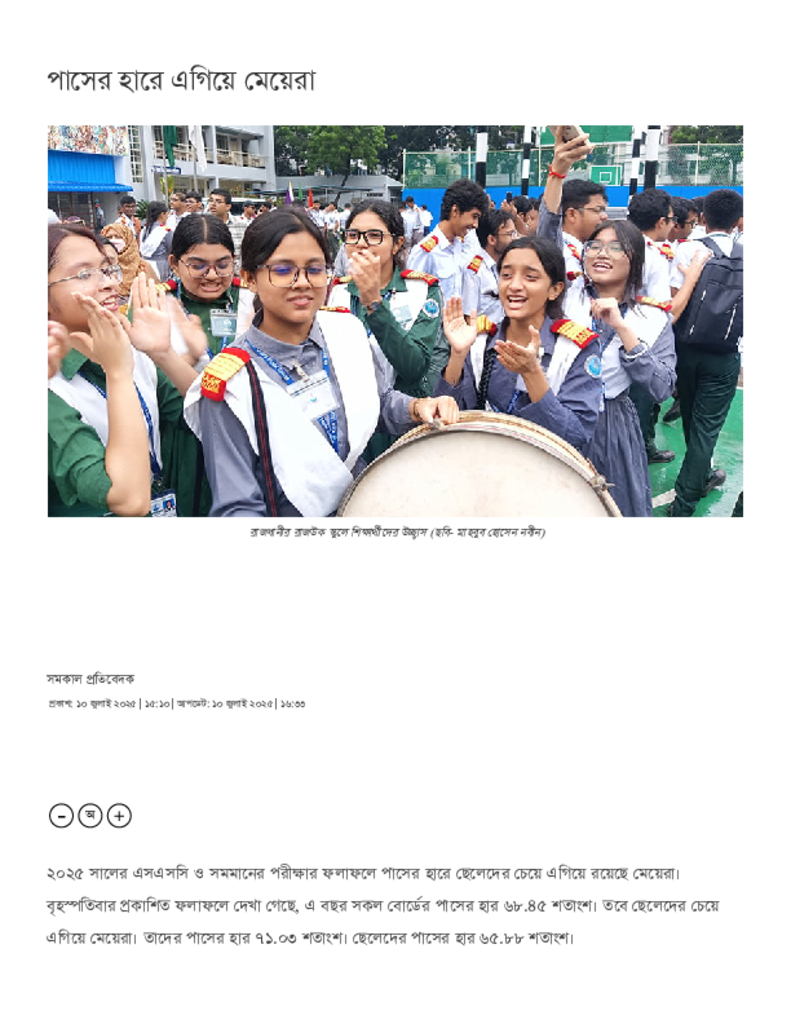পাসের হারে এগিয়ে মেয়েরা.pdf Published on 10 July 2025 Newspaper দৈনিক সমকাল Category Public Examination Public Examination SSC Download