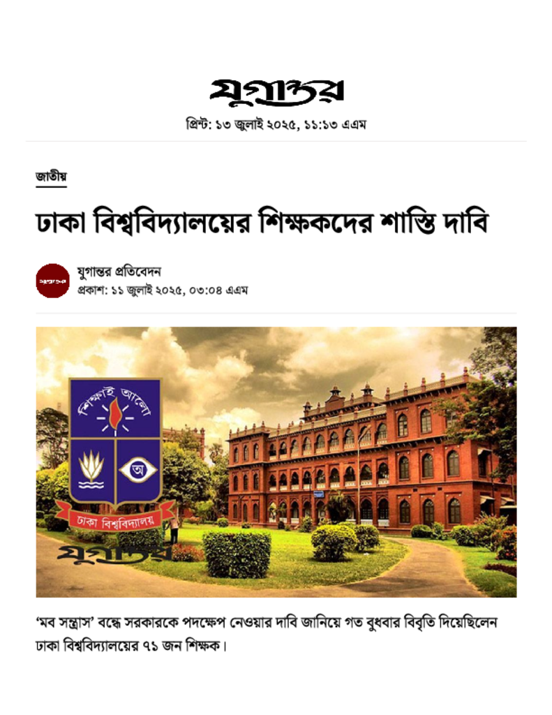 ঢাকা বিশ্ববিদ্যালয়ের শিক্ষকদের শাস্তি দাবি.pdf Published on 11 July 2025 Newspaper দৈনিক যুগান্তর Category Others General Education Download