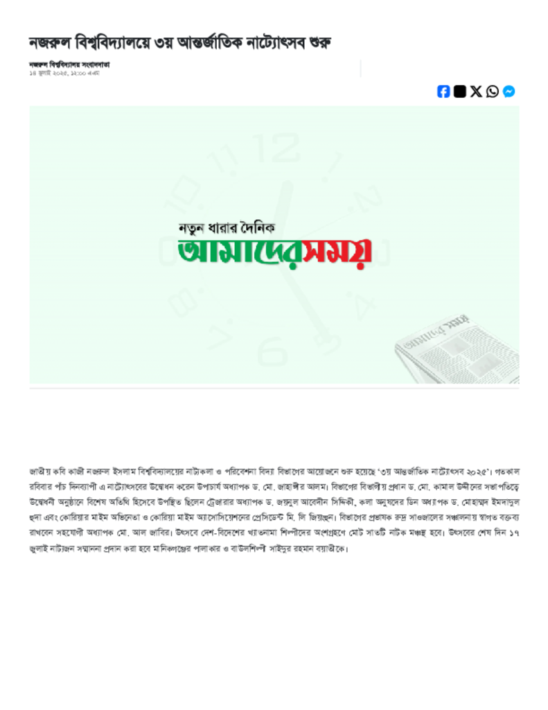 নজরুল বিশ্ববিদ্যালয়ে ৩য় আন্তর্জাতিক নাট্যোৎসব শুরু.pdf Published on 14 July 2025 Newspaper দৈনিক আমাদের সময় Category Others General Education Download