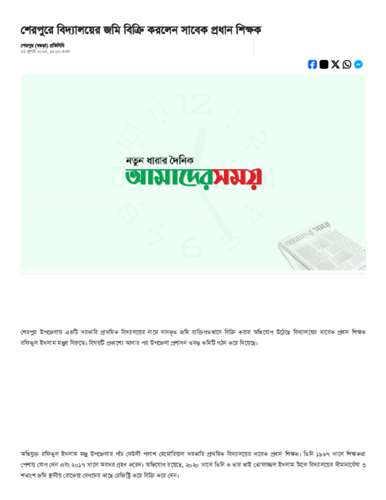 শেরপুরে বিদ্যালয়ের জমি বিক্রি করলেন সাবেক প্রধান শিক্ষক.pdf Published on 14 July 2025 Newspaper দৈনিক আমাদের সময় Category Others Download