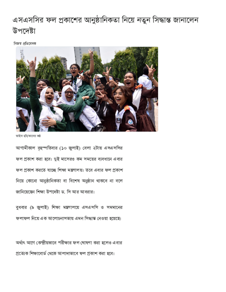 এসএসসির ফল প্রকাশের আনুষ্ঠানিকতা নিয়ে নতুন সিদ্ধান্ত জানালেন উপদেষ্টা.pdf Published on 09 July 2025 Newspaper দৈনিক কালের কন্ঠ Category Educational Ministry / Departments Download