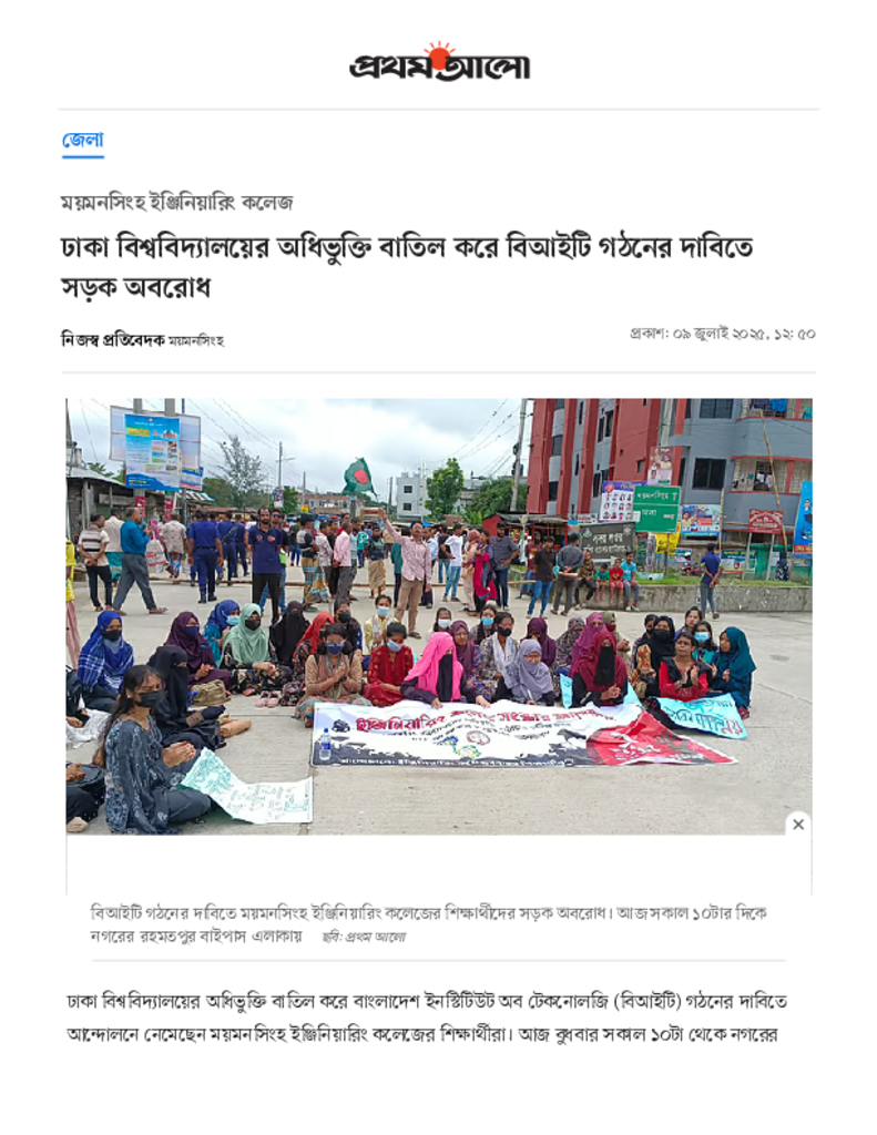 ঢাকা বিশ্ববিদ্যালয়ের অধিভুক্তি বাতিল করে বিআইটি গঠনের দাবিতে সড়ক অবরোধ.pdf Published on 09 July 2025 Newspaper দৈনিক প্রথম আলো Category Others Download