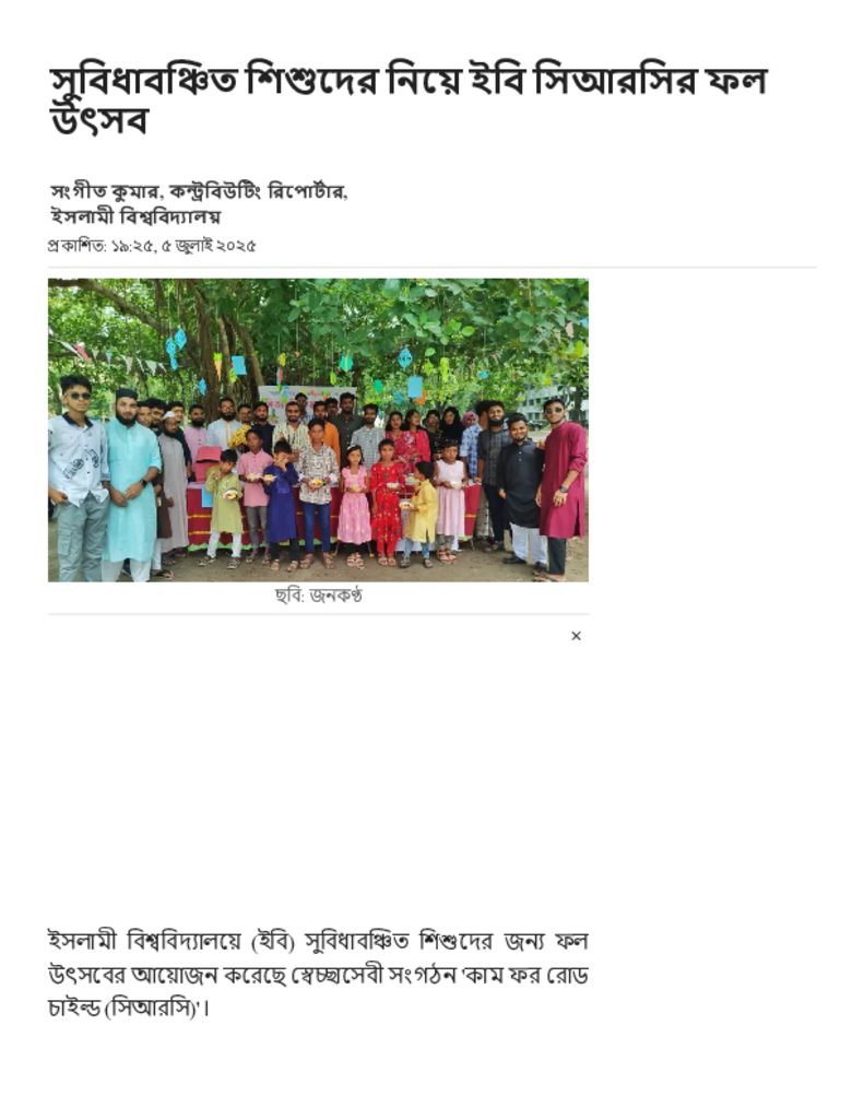 সুবিধাবঞ্চিত শিশুদের নিয়ে ইবি সিআরসির ফল উৎসব.pdf Published on 05 July 2025 Newspaper দৈনিক জনকণ্ঠ Category Others Download