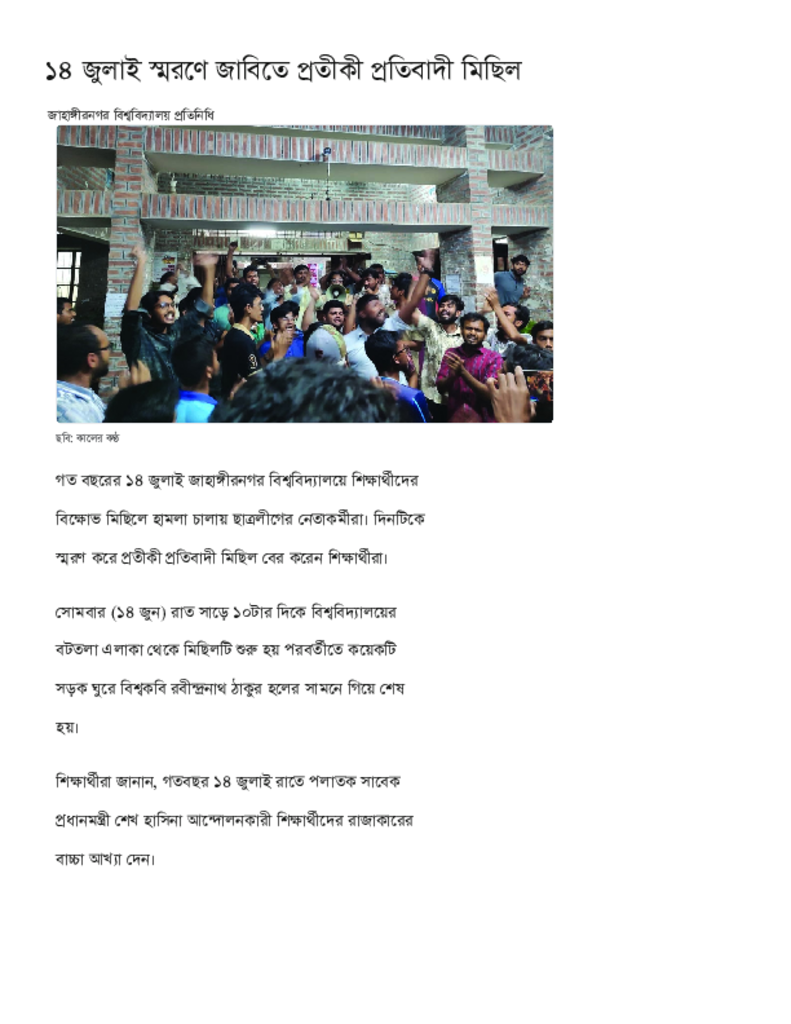 ১৪ জুলাই স্মরণে জাবিতে প্রতীকী প্রতিবাদী মিছিল.pdf Published on 15 July 2025 Newspaper দৈনিক কালের কন্ঠ Category Others General Education Download