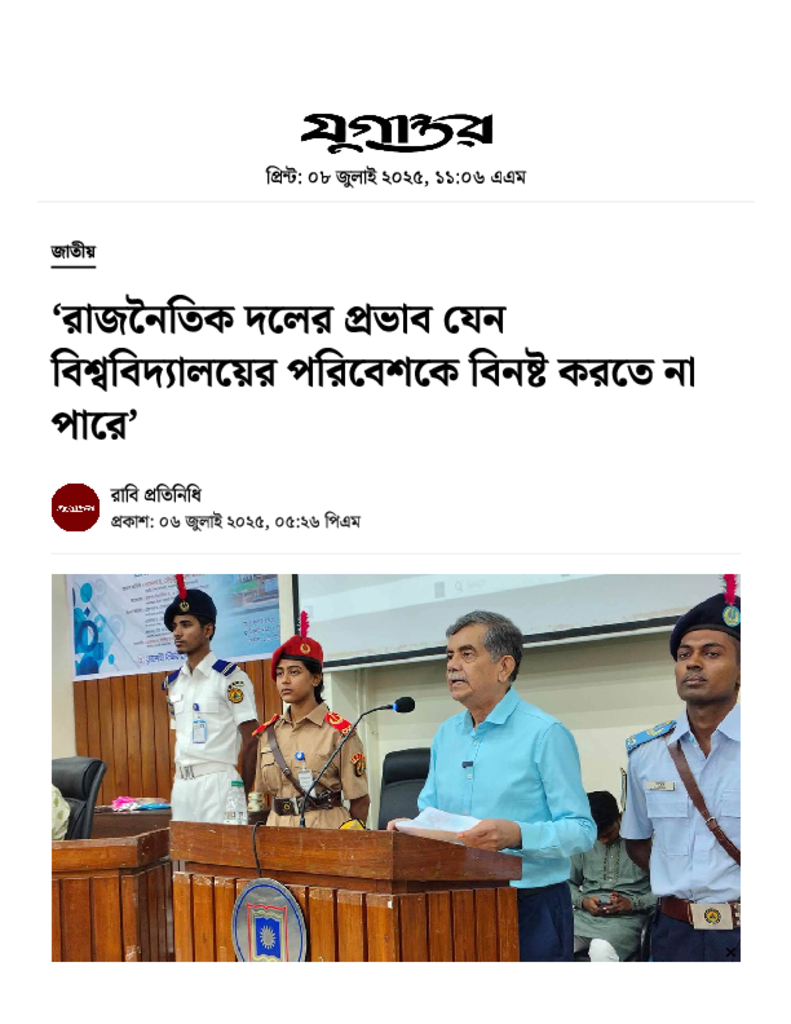 ‘রাজনৈতিক দলের প্রভাব যেন বিশ্ববিদ্যালয়ের পরিবেশকে বিনষ্ট করতে না পারে’.pdf Published on 06 July 2025 Newspaper দৈনিক যুগান্তর Category Personal Opinion / Discussion / Commentary General Education Download
