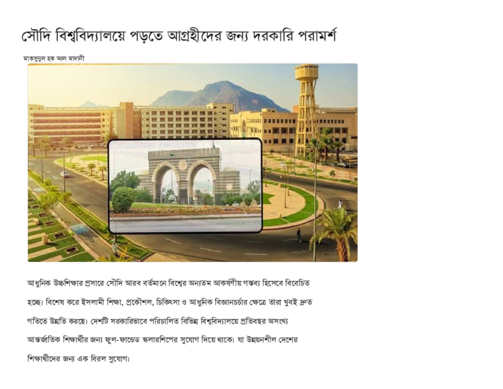 সৌদি বিশ্ববিদ্যালয়ে পড়তে আগ্রহীদের জন্য দরকারি পরামর্শ.pdf Published on 07 July 2025 Newspaper দৈনিক কালের কন্ঠ Category General Education General Education Download