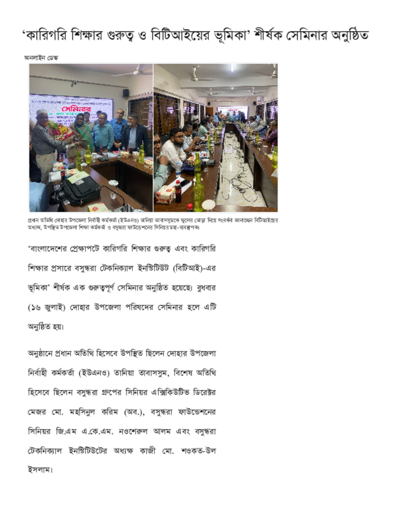 ‘কারিগরি শিক্ষার গুরুত্ব ও বিটিআইয়ের ভূমিকা’ শীর্ষক সেমিনার অনুষ্ঠিত.pdf Published on 16 July 2025 Newspaper দৈনিক কালের কন্ঠ Category Technical and Vocational Education Download
