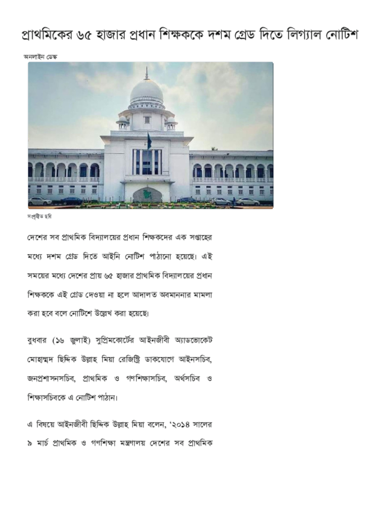 প্রাথমিকের ৬৫ হাজার প্রধান শিক্ষককে দশম গ্রেড দিতে লিগ্যাল নোটিশ.pdf Published on 16 July 2025 Newspaper দৈনিক কালের কন্ঠ Category Educational Ministry / Departments Download