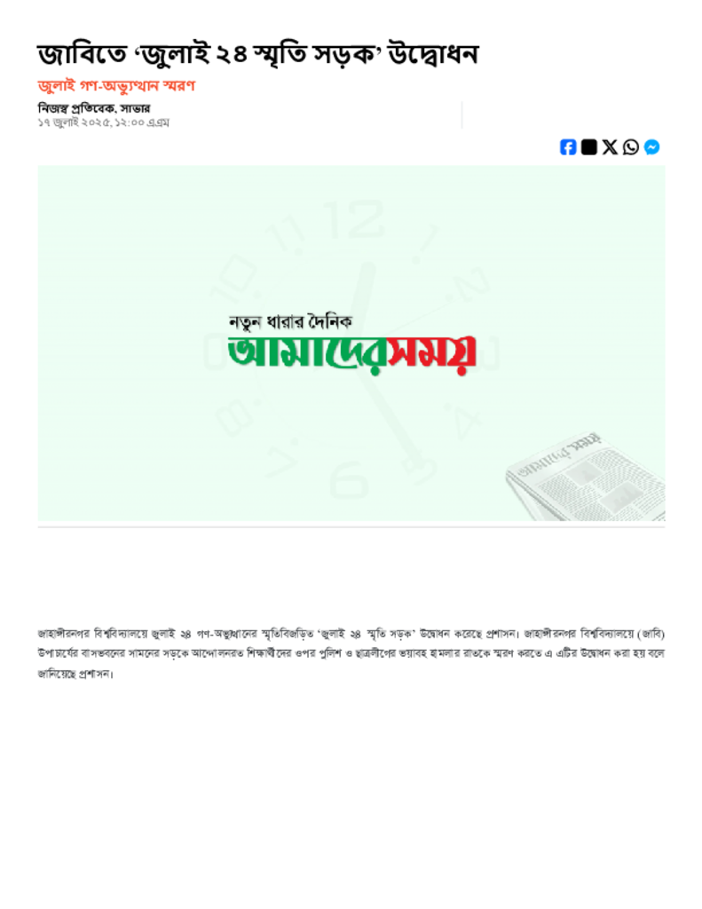 জাবিতে ‘জুলাই ২৪ স্মৃতি সড়ক’ উদ্বোধন.pdf Published on 17 July 2025 Newspaper দৈনিক আমাদের সময় Category Others General Education Download