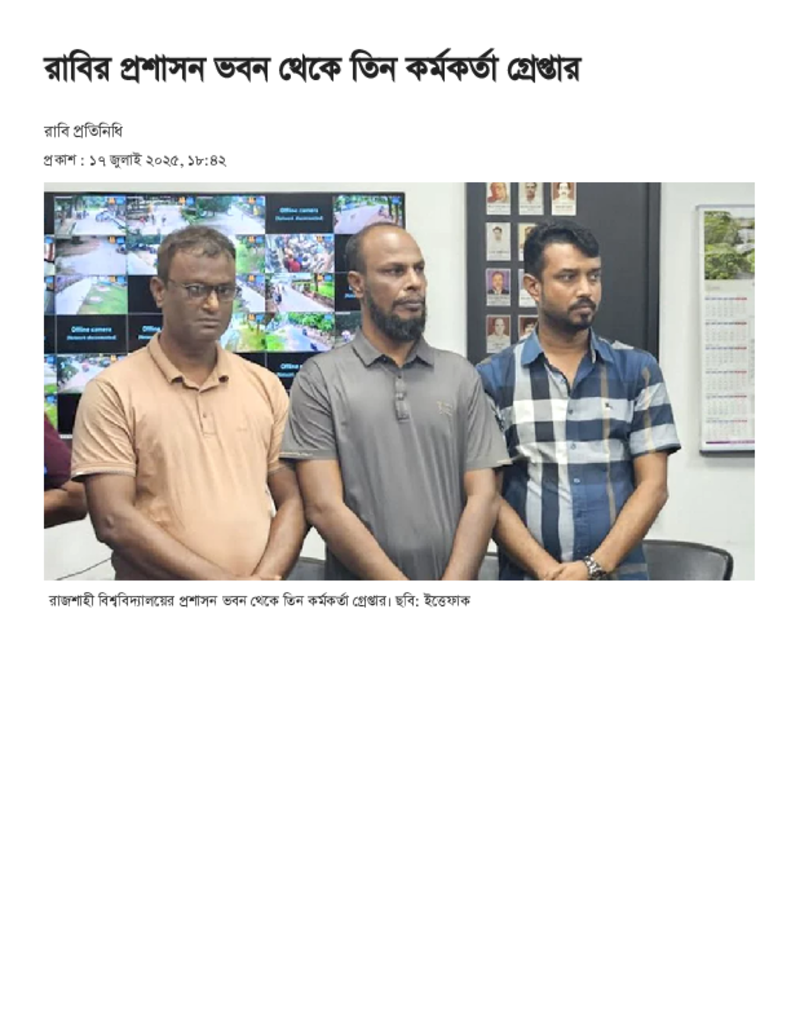 রাবির প্রশাসন ভবন থেকে তিন কর্মকর্তা গ্রেপ্তার.pdf Published on 17 July 2025 Newspaper দৈনিক ইত্তেফাক Category Others General Education Download