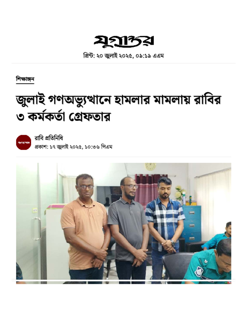 জুলাই গণঅভ্যুত্থানে হামলার মামলায় রাবির ৩ কর্মকর্তা গ্রেফতার.pdf Published on 17 July 2025 Newspaper দৈনিক যুগান্তর Category Others General Education Download