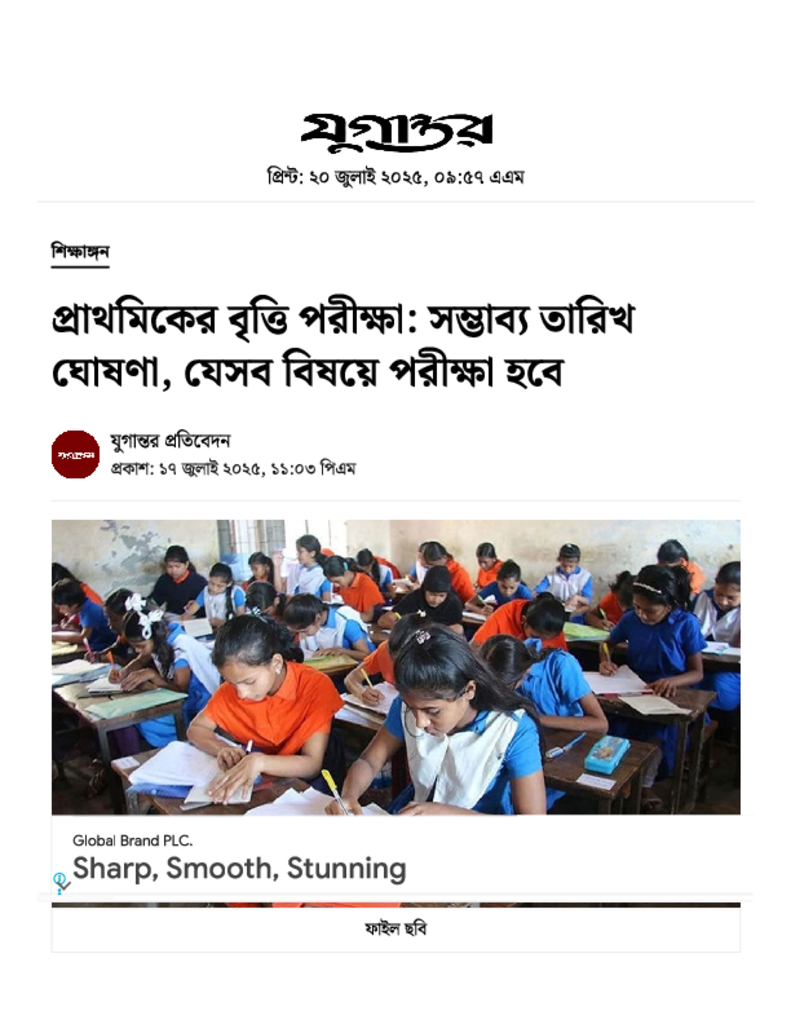 প্রাথমিকের বৃত্তি পরীক্ষা_ সম্ভাব্য তারিখ ঘোষণা, যেসব বিষয়ে পরীক্ষা হবে.pdf Published on 17 July 2025 Newspaper দৈনিক যুগান্তর Category Educational Ministry / Departments Education Ministry / Division / Directorate Download