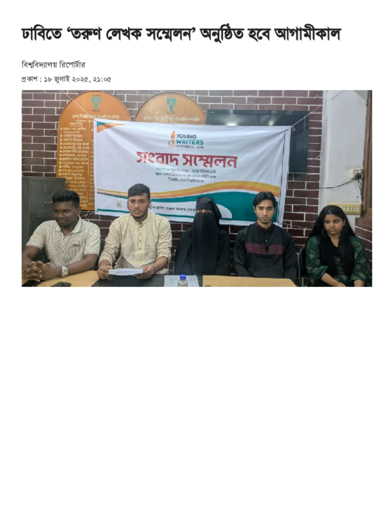 ঢাবিতে ‘তরুণ লেখক সম্মেলন’ অনুষ্ঠিত হবে আগামীকাল.pdf Published on 17 July 2025 Newspaper দৈনিক ইত্তেফাক Category Others General Education Download