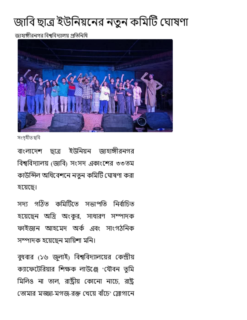 জাবি ছাত্র ইউনিয়নের নতুন কমিটি ঘোষণা.pdf Published on 18 July 2025 Newspaper দৈনিক কালের কন্ঠ Category Student Politics General Education Download