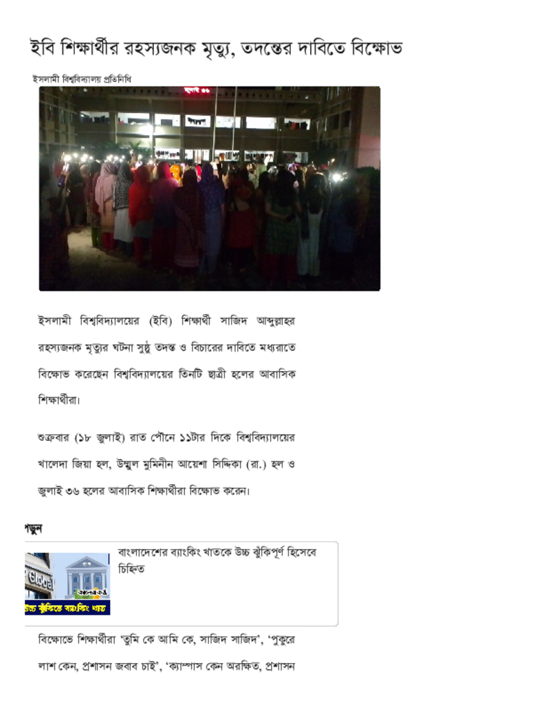 ইবি শিক্ষার্থীর রহস্যজনক মৃত্যু, তদন্তের দাবিতে বিক্ষোভ.pdf Published on 19 July 2025 Newspaper দৈনিক কালের কন্ঠ Category Others Download