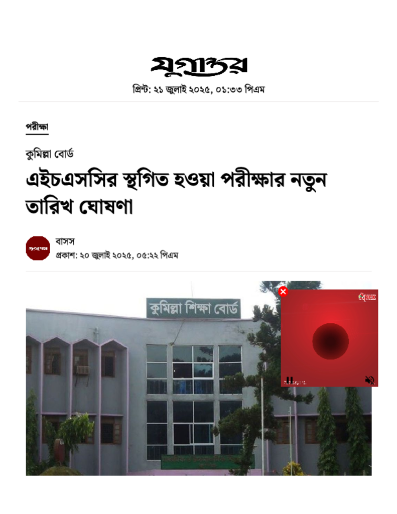 এইচএসসির স্থগিত হওয়া পরীক্ষার নতুন তারিখ ঘোষণা.pdf Published on 20 July 2025 Newspaper দৈনিক যুগান্তর Category Public Examination Public Examination HSC Download