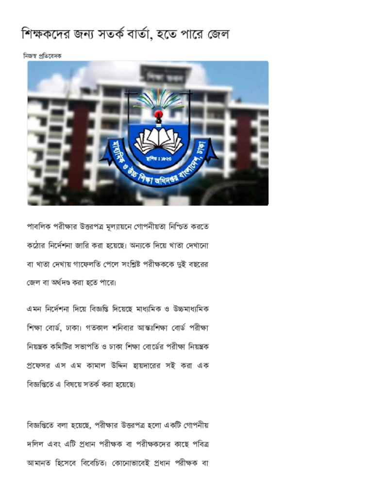 শিক্ষকদের জন্য সতর্ক বার্তা, হতে পারে জেল.pdf Published on 20 July 2025 Newspaper দৈনিক কালের কন্ঠ Category Educational Ministry / Departments Download