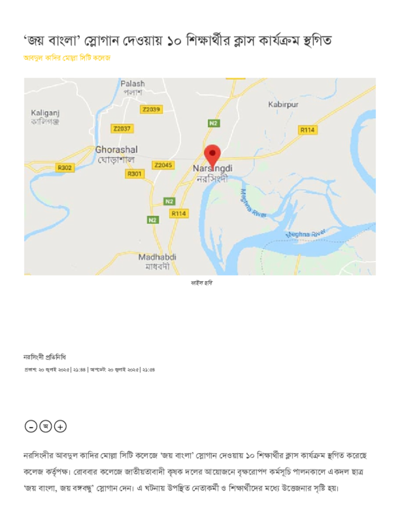 ‘জয় বাংলা’ স্লোগান দেওয়ায় ১০ শিক্ষার্থীর ক্লাস কার্যক্রম স্থগিত.pdf Published on 20 July 2025 Newspaper দৈনিক সমকাল Category Others General Education Download