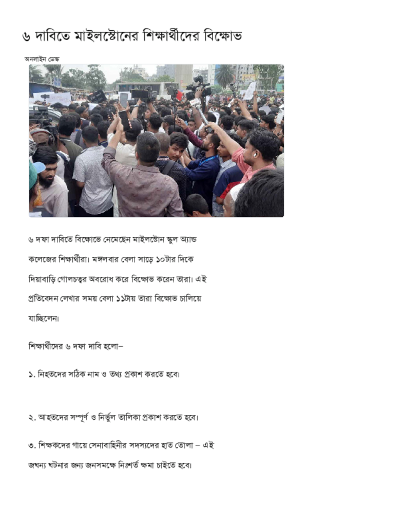 ৬ দাবিতে মাইলস্টোনের শিক্ষার্থীদের বিক্ষোভ.pdf Published on 22 July 2025 Newspaper দৈনিক কালের কন্ঠ Category Others Download