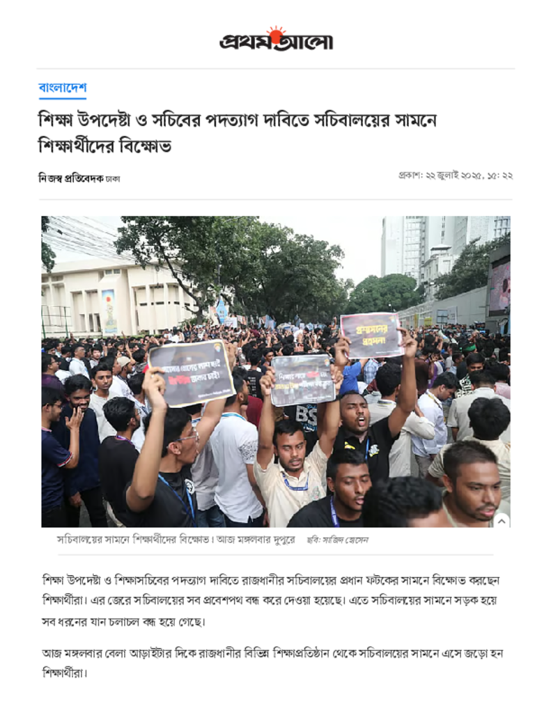 শিক্ষা উপদেষ্টা ও সচিবের পদত্যাগ দাবিতে সচিবালয়ের সামনে শিক্ষার্থীদের বিক্ষোভ.pdf Published on 22 July 2025 Newspaper দৈনিক প্রথম আলো Category Others Download