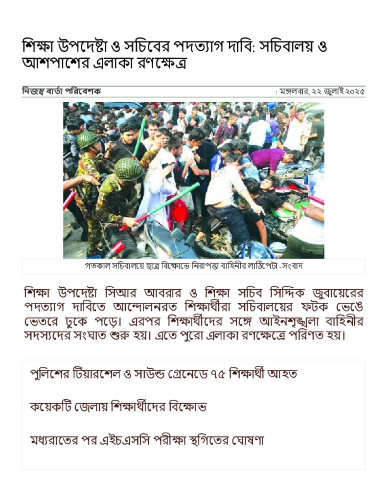 শিক্ষা উপদেষ্টা ও সচিবের পদত্যাগ দাবি_ সচিবালয় ও আশপাশের এলাকা রণক্ষেত্র.pdf Published on 22 July 2025 Newspaper দৈনিক সংবাদ Category Others Download