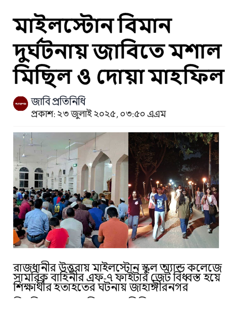 মাইলস্টোন বিমান দুর্ঘটনায় জাবিতে মশাল মিছিল ও দোয়া মাহফিল.pdf Published on 23 July 2025 Newspaper দৈনিক যুগান্তর Category Others Download