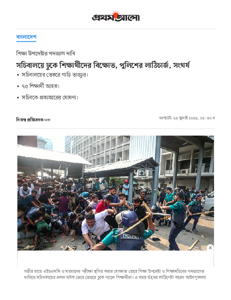 সচিবালয়ে ঢুকে শিক্ষার্থীদের বিক্ষোভ, পুলিশের লাঠিচার্জ, সংঘর্ষ.pdf