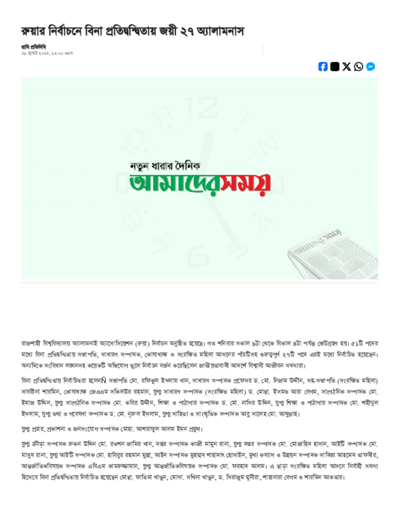 রুয়ার নির্বাচনে বিনা প্রতিদ্বন্দ্বিতায় জয়ী ২৭ অ্যালামনাস.pdf Published on 28 July 2025 Newspaper দৈনিক আমাদের সময় Category Others General Education Download