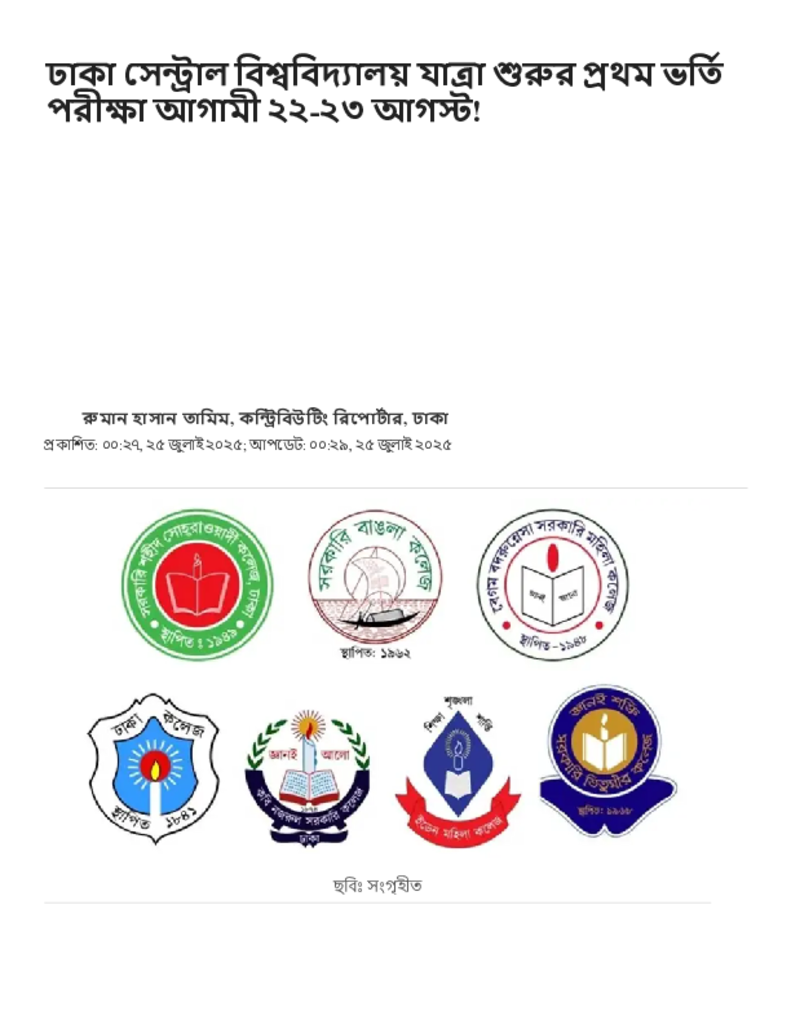 ঢাকা সেন্ট্রাল বিশ্ববিদ্যালয় যাত্রা শুরুর প্রথম ভর্তি পরীক্ষা আগামী ২২-২৩ আগস্ট!.pdf Published on 25 July 2025 Newspaper দৈনিক জনকণ্ঠ Category Admission / Seat Problem General Education Download