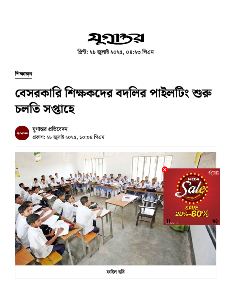 বেসরকারি শিক্ষকদের বদলির পাইলটিং শুরু চলতি সপ্তাহে.pdf Published on 28 July 2025 Newspaper দৈনিক যুগান্তর Category Educational Ministry / Departments Download