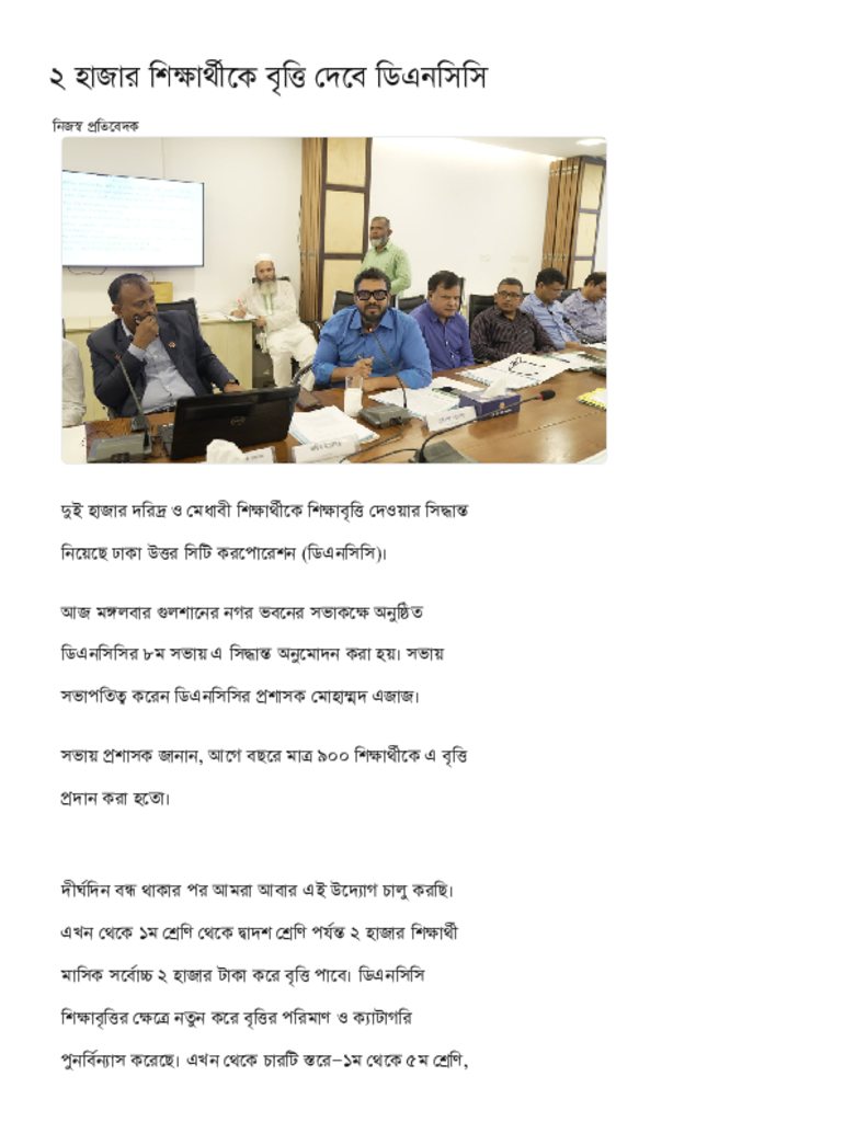 ২ হাজার শিক্ষার্থীকে বৃত্তি দেবে ডিএনসিসি.pdf Published on 30 July 2025 Newspaper দৈনিক কালের কন্ঠ Category Others Download