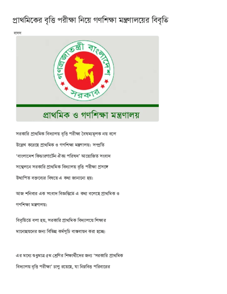 প্রাথমিকের বৃত্তি পরীক্ষা নিয়ে গণশিক্ষা মন্ত্রণালয়ের বিবৃতি.pdf Published on 02 August 2025 Newspaper দৈনিক কালের কন্ঠ Category Educational Ministry / Departments Education Ministry / Division / Directorate Download