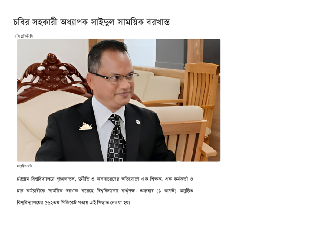 চবির সহকারী অধ্যাপক সাইদুল সাময়িক বরখাস্ত.pdf Published on 03 August 2025 Newspaper দৈনিক কালের কন্ঠ Category Others General Education Download