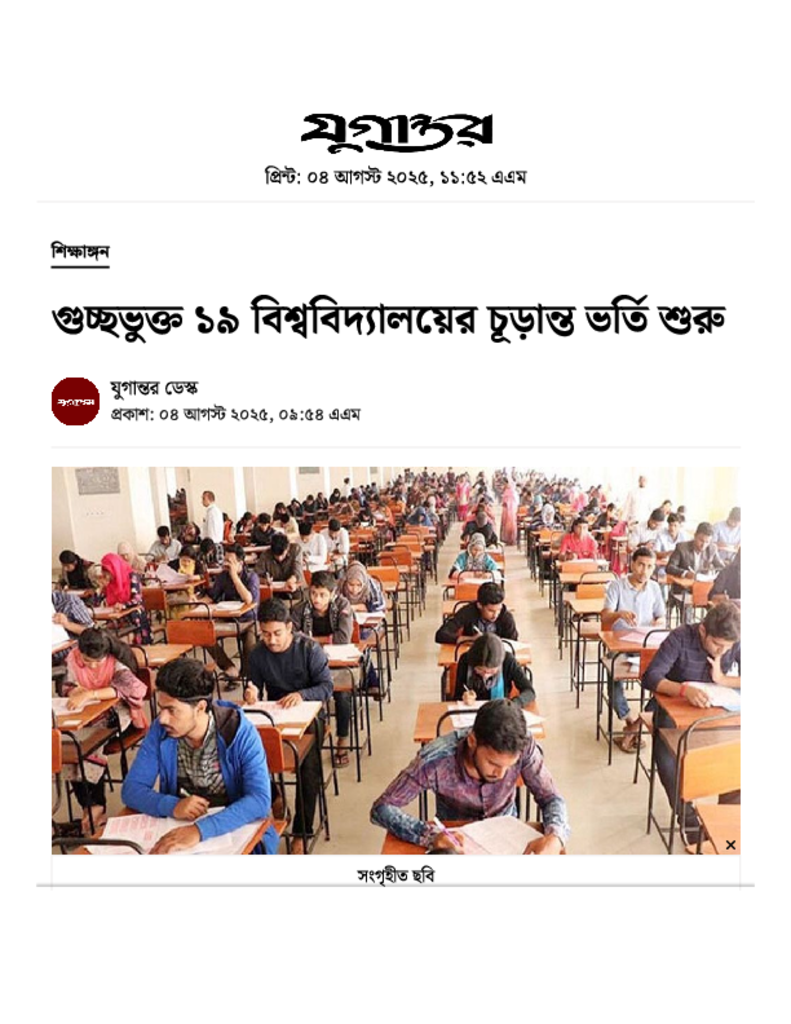 গুচ্ছভুক্ত ১৯ বিশ্ববিদ্যালয়ের চূড়ান্ত ভর্তি শুরু.pdf Published on 04 August 2025 Newspaper দৈনিক যুগান্তর Category Admission / Seat Problem General Education Download