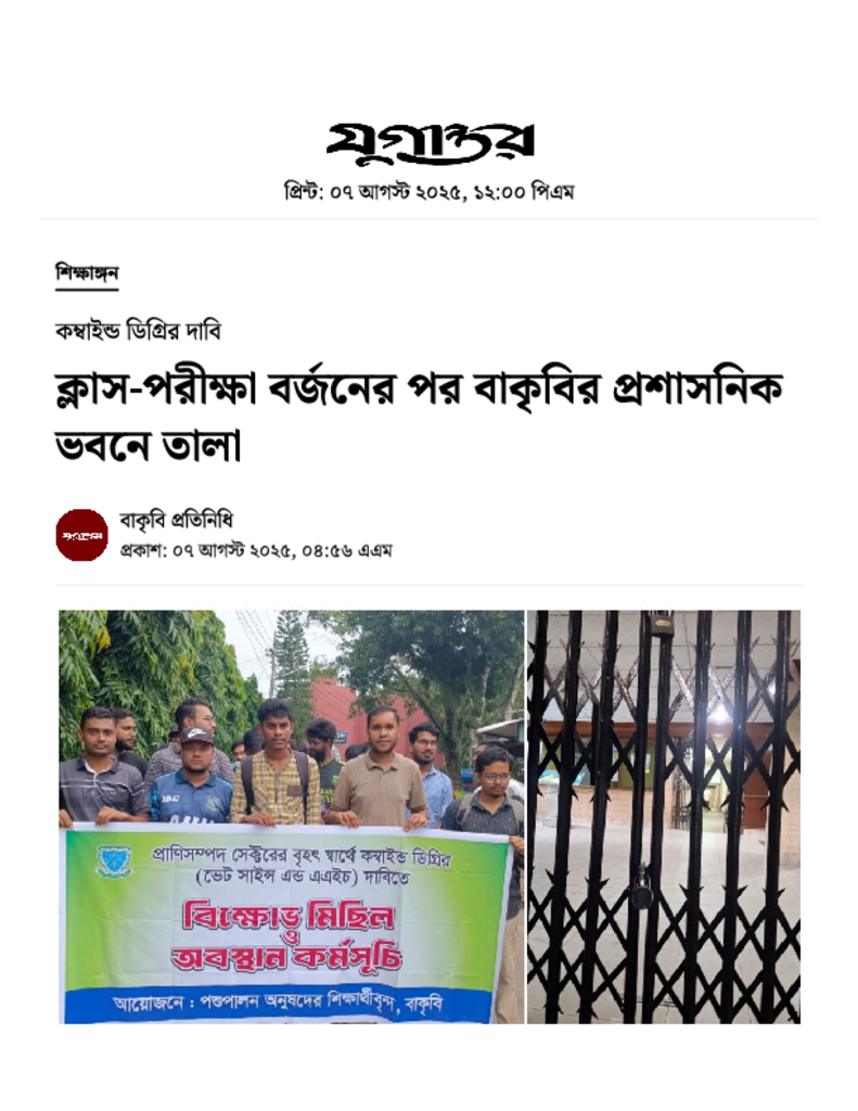 ক্লাস-পরীক্ষা বর্জনের পর বাকৃবির প্রশাসনিক ভবনে তালা.pdf Published on 07 August 2025 Newspaper দৈনিক যুগান্তর Category Others Download