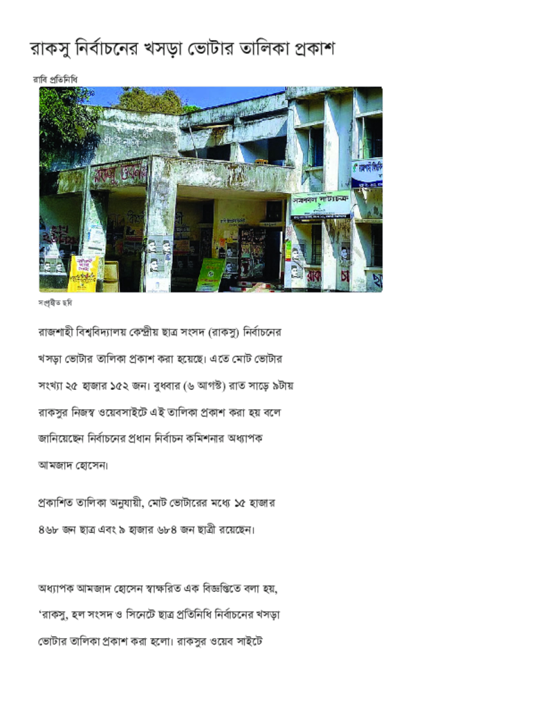 রাকসু নির্বাচনের খসড়া ভোটার তালিকা প্রকাশ.pdf Published on 07 August 2025 Newspaper দৈনিক কালের কন্ঠ Category Student Politics General Education Download