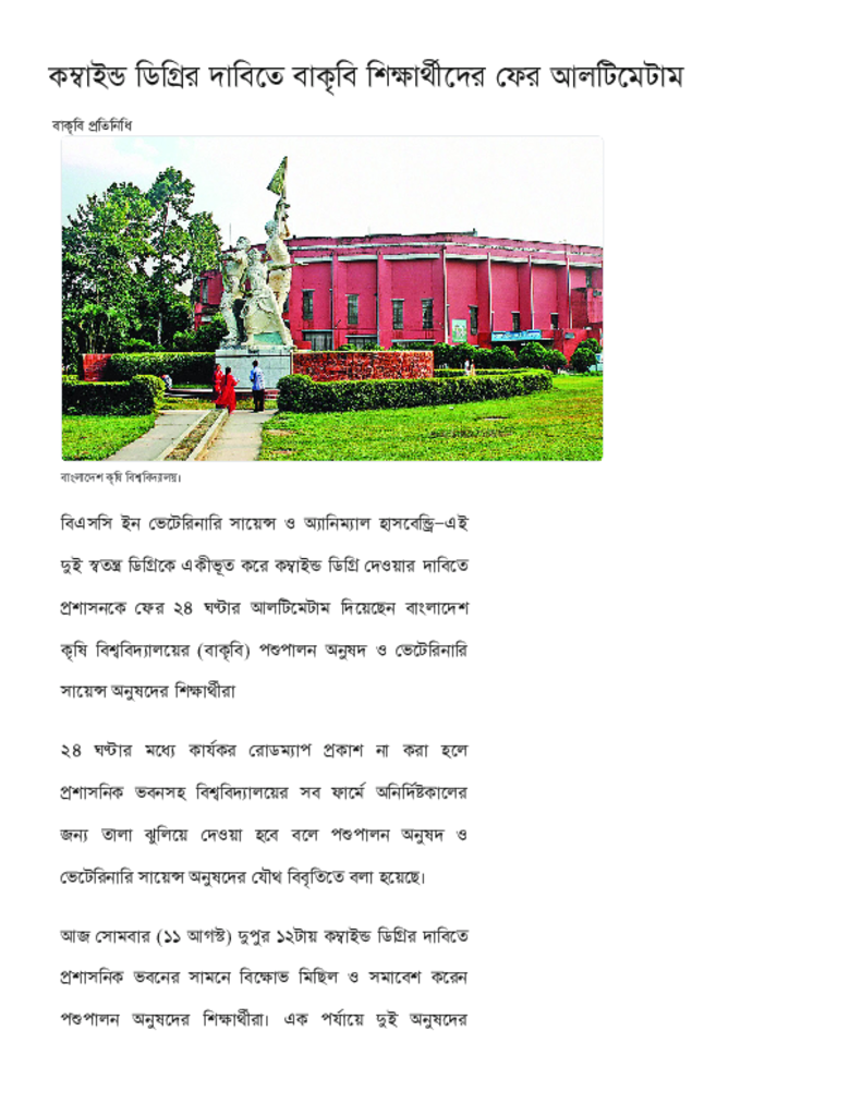 কম্বাইন্ড ডিগ্রির দাবিতে বাকৃবি শিক্ষার্থীদের ফের আলটিমেটাম.pdf Published on 11 August 2025 Newspaper দৈনিক কালের কন্ঠ Category Others General Education Download