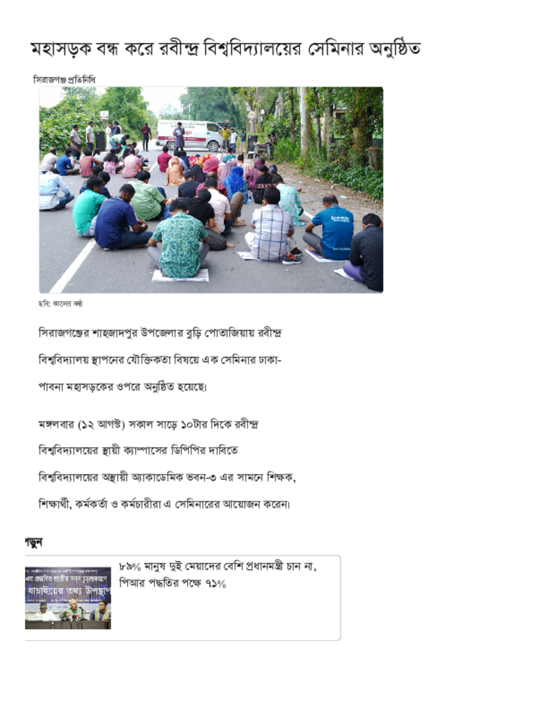 মহাসড়ক বন্ধ করে রবীন্দ্র বিশ্ববিদ্যালয়ের সেমিনার অনুষ্ঠিত.pdf Published on 12 August 2025 Newspaper দৈনিক কালের কন্ঠ Category Others General Education Download