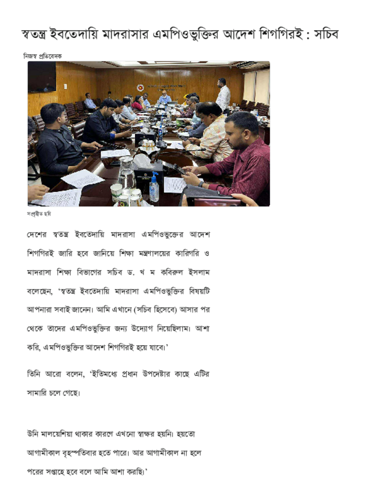 স্বতন্ত্র ইবতেদায়ি মাদরাসার এমপিওভুক্তির আদেশ শিগগিরই _ সচিব.pdf Published on 13 August 2025 Newspaper দৈনিক কালের কন্ঠ Category Educational Ministry / Departments Download