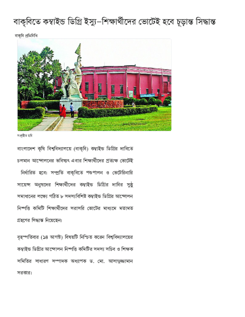 বাকৃবিতে কম্বাইন্ড ডিগ্রি ইস্যু—শিক্ষার্থীদের ভোটেই হবে চূড়ান্ত সিদ্ধান্ত.pdf Published on 14 August 2025 Newspaper দৈনিক কালের কন্ঠ Category Others General Education Download