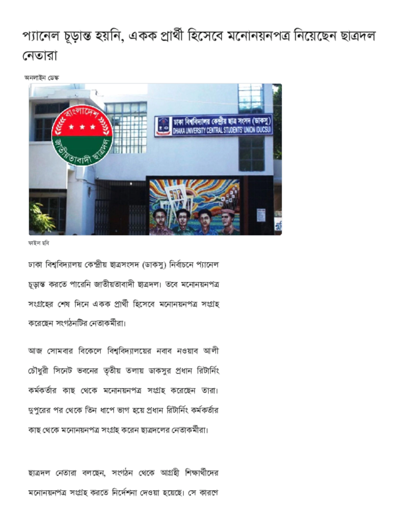 প্যানেল চূড়ান্ত হয়নি, একক প্রার্থী হিসেবে মনোনয়নপত্র নিয়েছেন ছাত্রদল নেতারা.pdf Published on 18 August 2025 Newspaper দৈনিক কালের কন্ঠ Category Student Politics General Education Download
