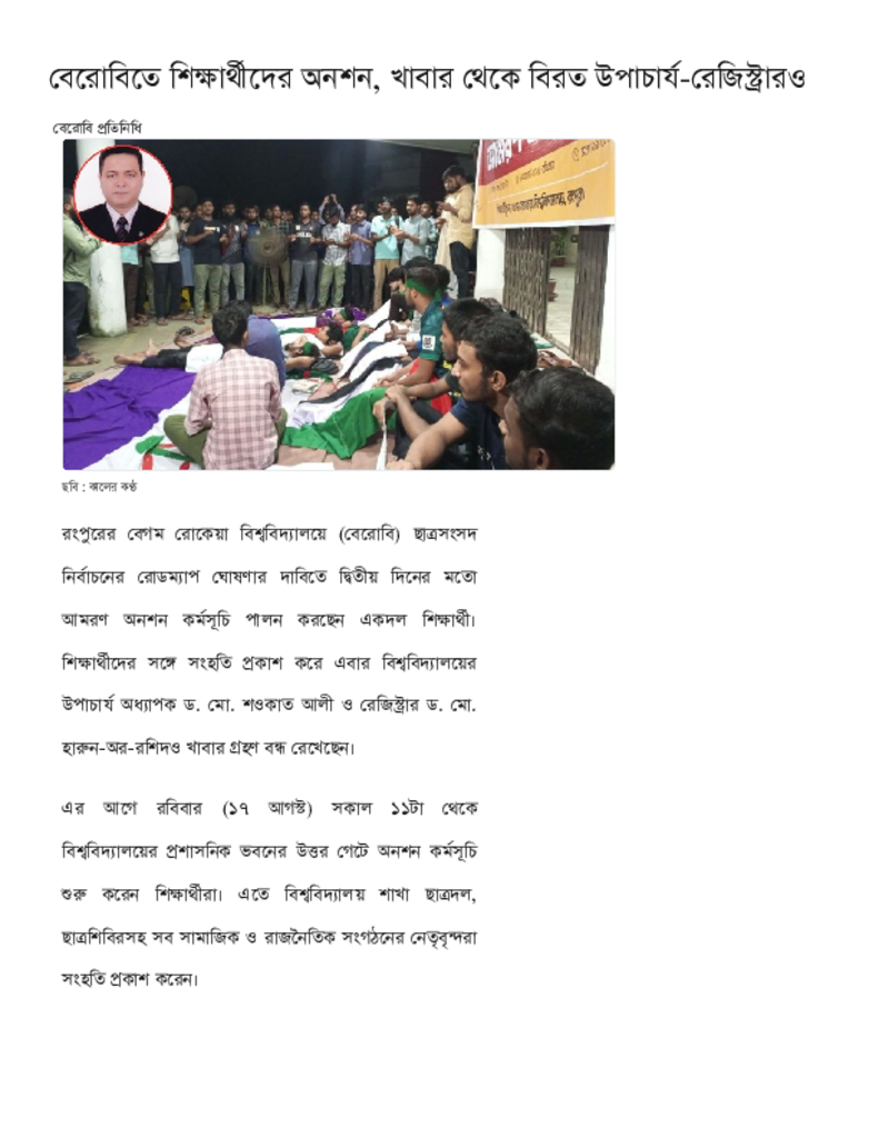 বেরোবিতে শিক্ষার্থীদের অনশন, খাবার থেকে বিরত উপাচার্য-রেজিস্ট্রারও.pdf Published on 18 August 2025 Newspaper দৈনিক কালের কন্ঠ Category Personal Opinion / Discussion / Commentary General Education Download