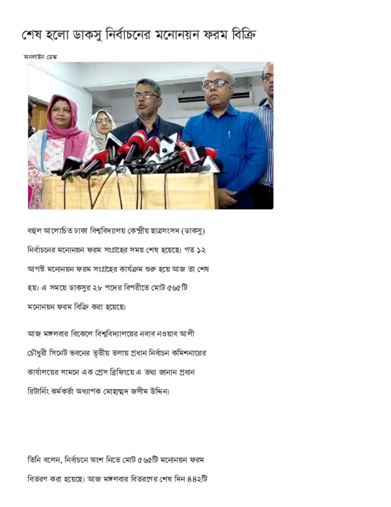 শেষ হলো ডাকসু নির্বাচনের মনোনয়ন ফরম বিক্রি.pdf Published on 18 August 2025 Newspaper দৈনিক কালের কন্ঠ Category Student Politics General Education Download