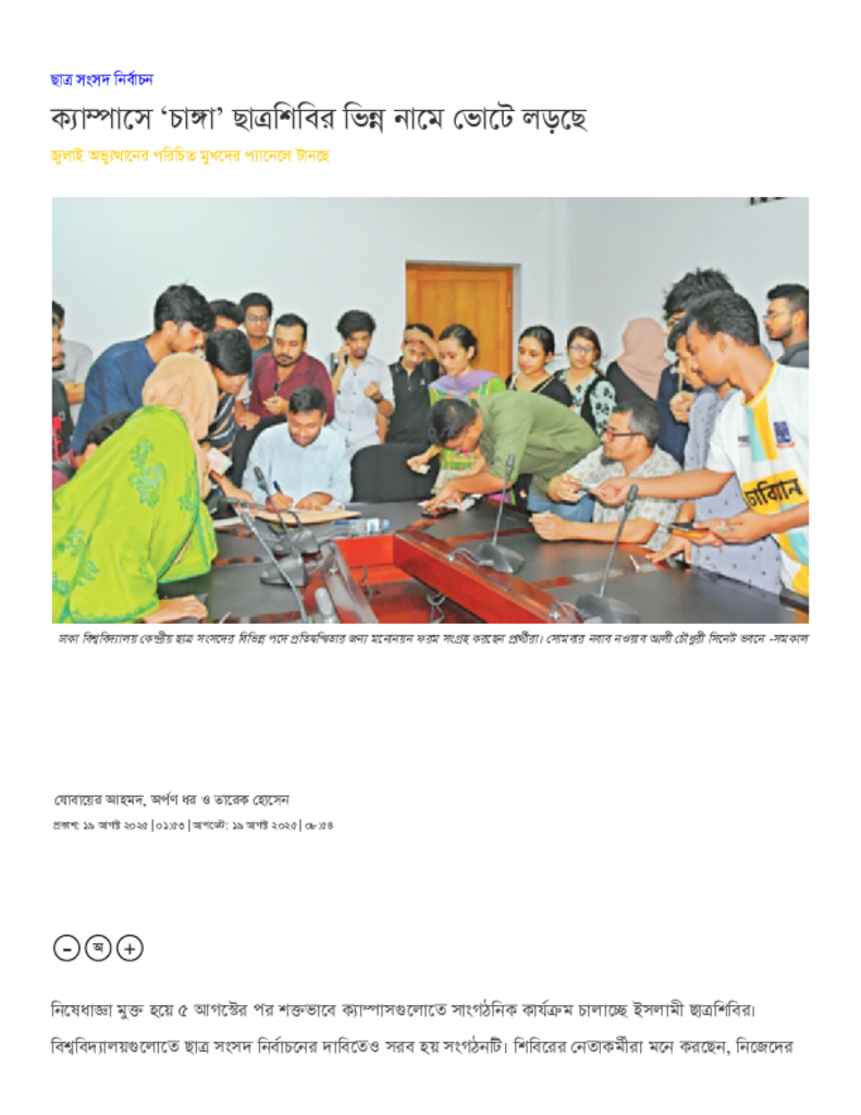 ক্যাম্পাসে ‘চাঙ্গা’ ছাত্রশিবির ভিন্ন নামে ভোটে লড়ছে.pdf Published on 19 August 2025 Newspaper দৈনিক সমকাল Category Student Politics General Education Download