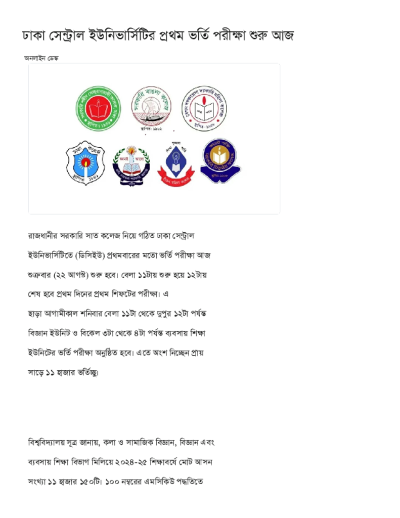 ঢাকা সেন্ট্রাল ইউনিভার্সিটির প্রথম ভর্তি পরীক্ষা শুরু আজ.pdf Published on 22 August 2025 Newspaper দৈনিক কালের কন্ঠ Category Admission / Seat Problem General Education Download