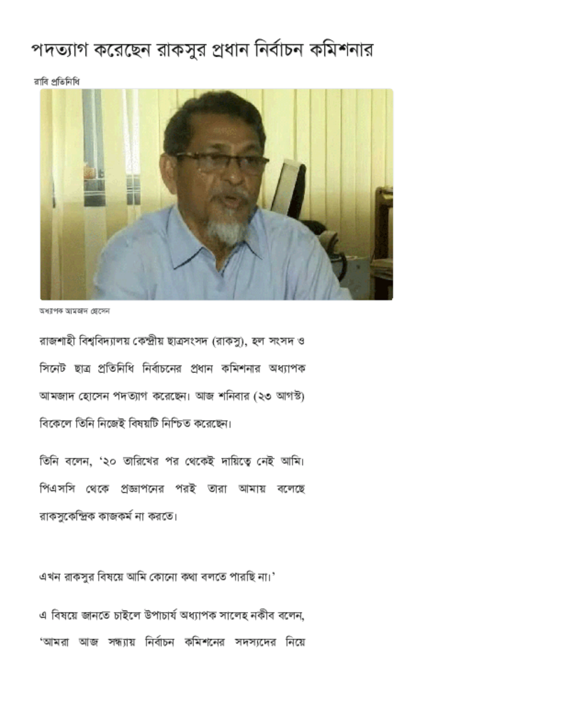 পদত্যাগ করেছেন রাকসুর প্রধান নির্বাচন কমিশনার.pdf Published on 23 August 2025 Newspaper দৈনিক কালের কন্ঠ Category Student Politics General Education Download