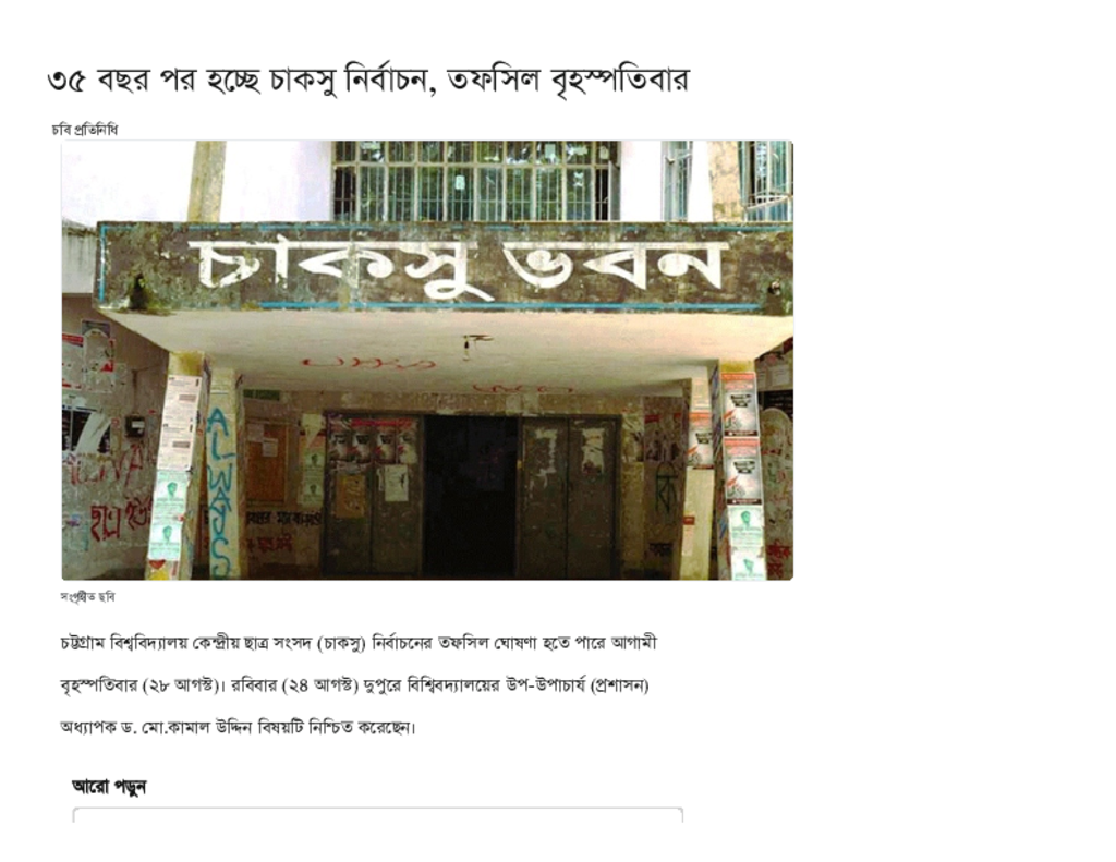 ৩৫ বছর পর হচ্ছে চাকসু নির্বাচন, তফসিল বৃহস্পতিবার.pdf Published on 24 August 2025 Newspaper দৈনিক কালের কন্ঠ Category Student Politics General Education Download