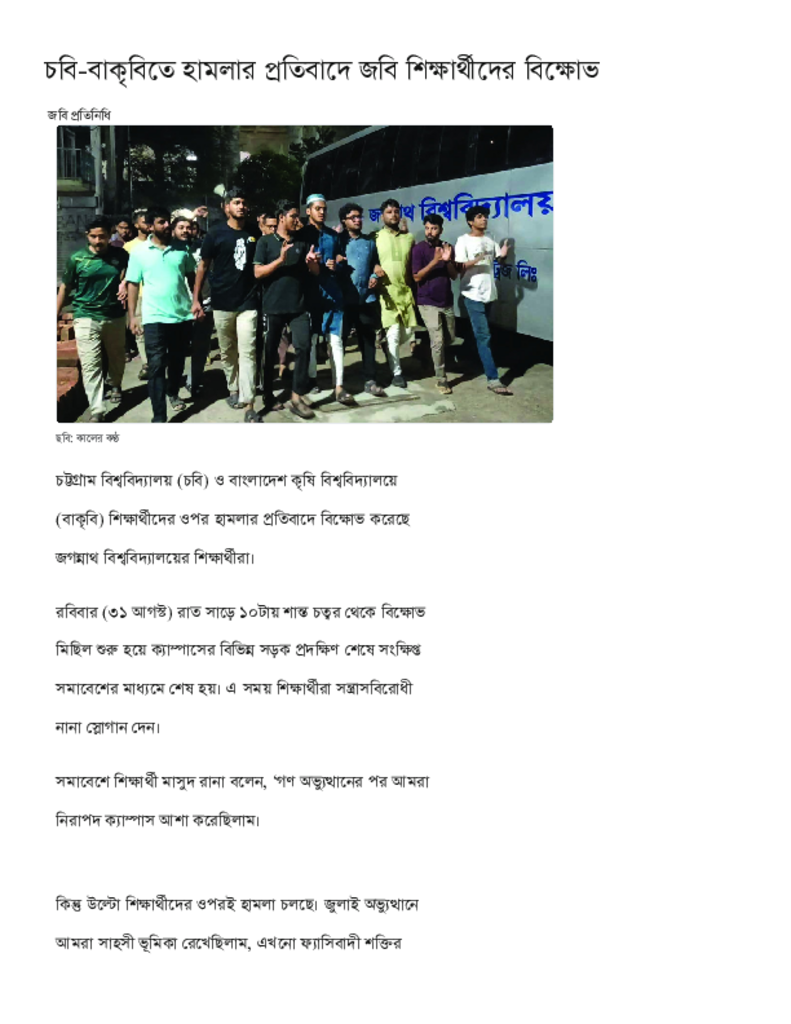 চবি-বাকৃবিতে হামলার প্রতিবাদে জবি শিক্ষার্থীদের বিক্ষোভ.pdf Published on 01 September 2025 Newspaper দৈনিক কালের কন্ঠ Category Others General Education Download