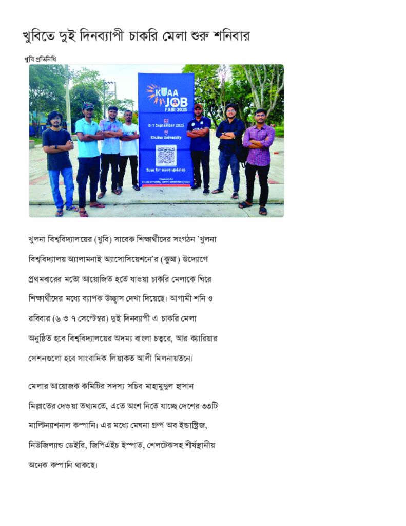 খুবিতে দুই দিনব্যাপী চাকরি মেলা শুরু শনিবার.pdf Published on 04 September 2025 Newspaper দৈনিক কালের কন্ঠ Category Others General Education Download
