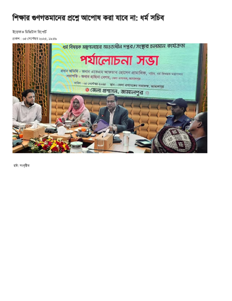 শিক্ষার গুণগতমানের প্রশ্নে আপোষ করা যাবে না_ ধর্ম সচিব.pdf Published on 05 September 2025 Newspaper দৈনিক ইত্তেফাক Category Personal Opinion / Discussion / Commentary Download